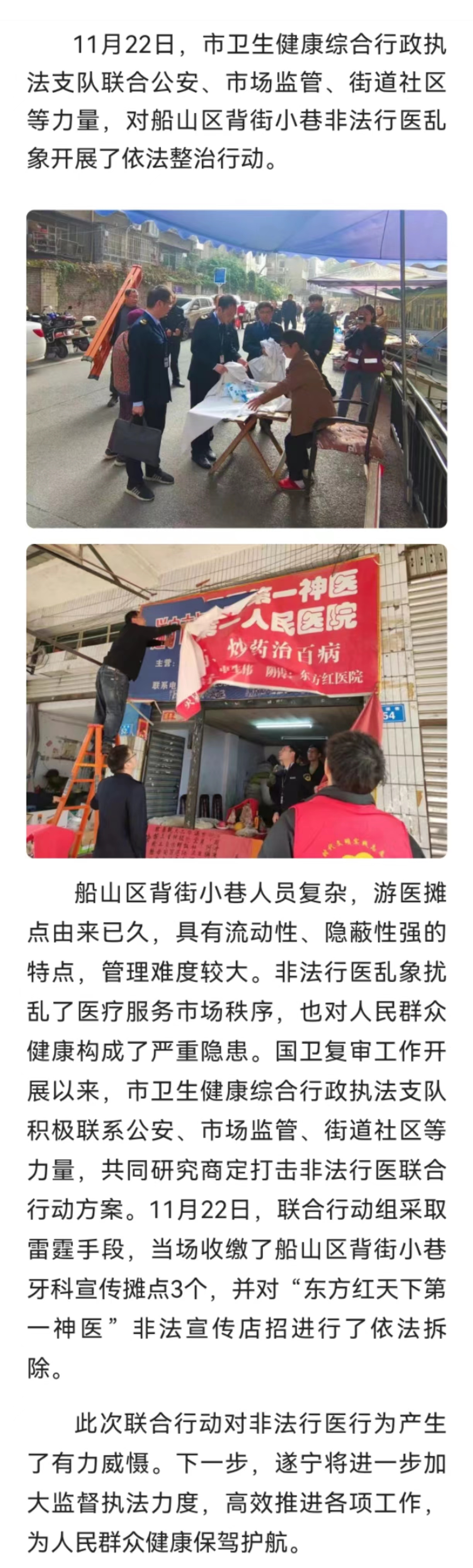 推动主题教育走实走深 健康遂宁系列报道⑤——遂宁卫监支队严厉打击非法行医