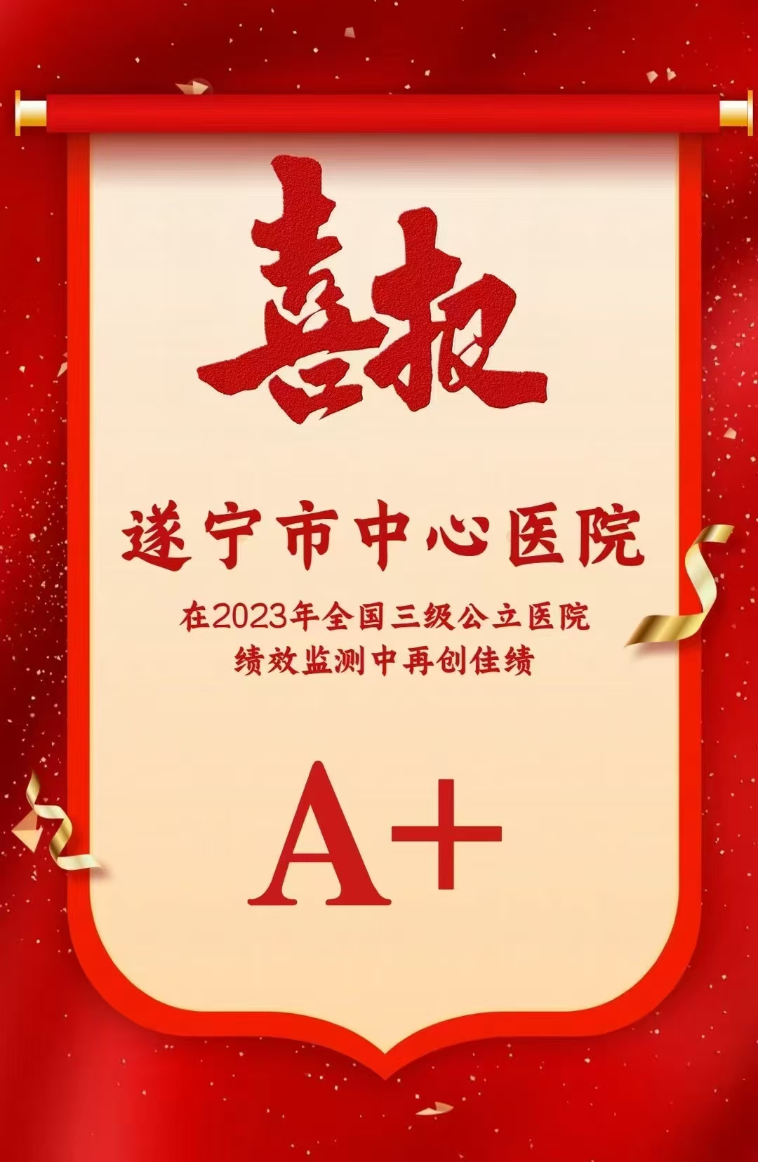 喜报!遂宁市中心医院获评全国三级公立医院绩效监测A+等级