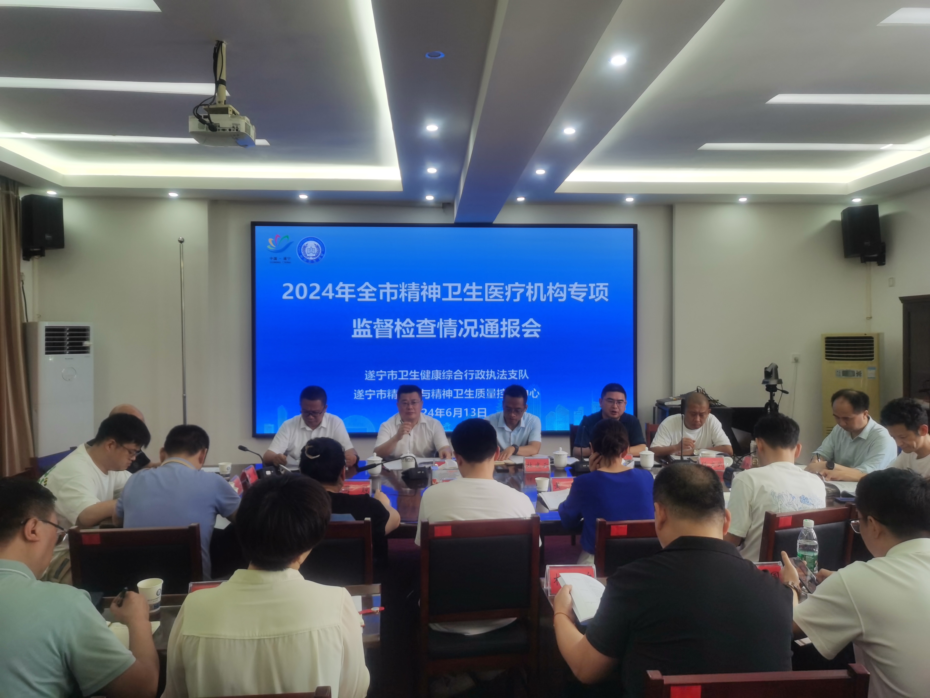 为进一步加强精神卫生医疗机构的监督管理,切实保障精神障碍患者的合法权益,维护健康安全的医疗秩序,遂宁市卫生健康综合行政执法支队联合遂宁市精神质控中心于2024年6月13日下午召开了全市精神卫生专项监督检查情况通报会。此次会议旨在总结前期专项检查成果,分析存在的问题,并提出相应的整改措施和后续监管计划。本次会议由赵勇支队长主持,各县(市、区)大队和精神卫生医疗机构负责人共36人参会。
