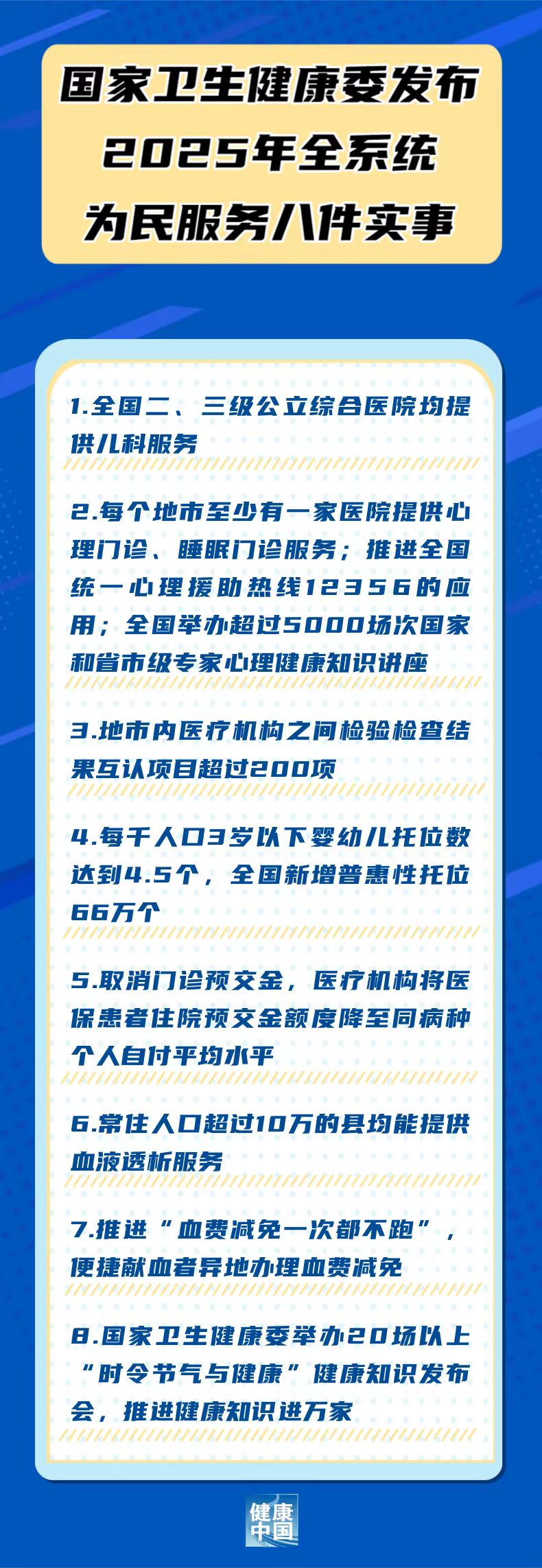 国家卫生健康委发布2025年全系统为民服务八件实事