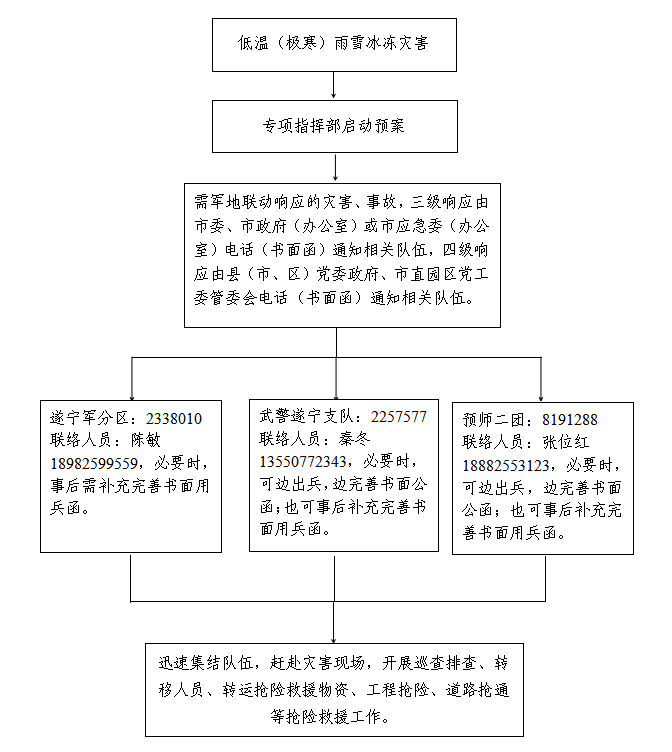 24.市消防救援支队:根据险情、灾情,按照市应急委安排,参与防灾减灾救灾有关工作,承担低温(极寒)雨雪冰冻灾害突发事件抢险救援救灾工作。