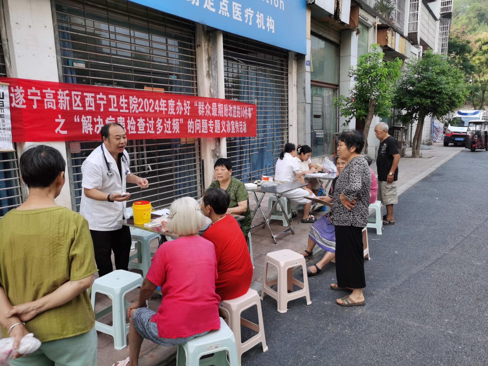 为积极响应遂宁市2024年度“群众最期盼改进的10件事”之“解决病患检查过多过频的问题”的民生号召,近日,遂宁高新区社事群工局组织园区基层医疗机构前往南湖半岛等居民小区开展义诊活动。