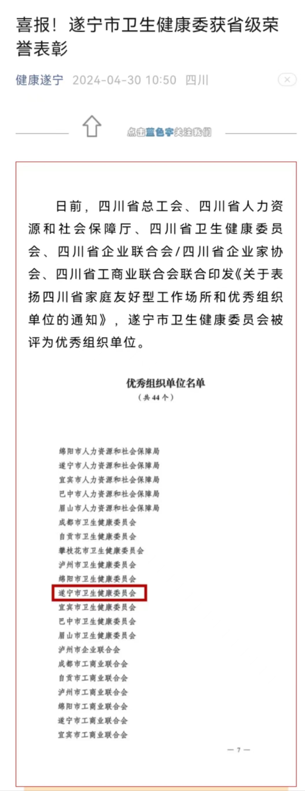 喜报!遂宁市卫生健康委荣获省级荣誉表彰