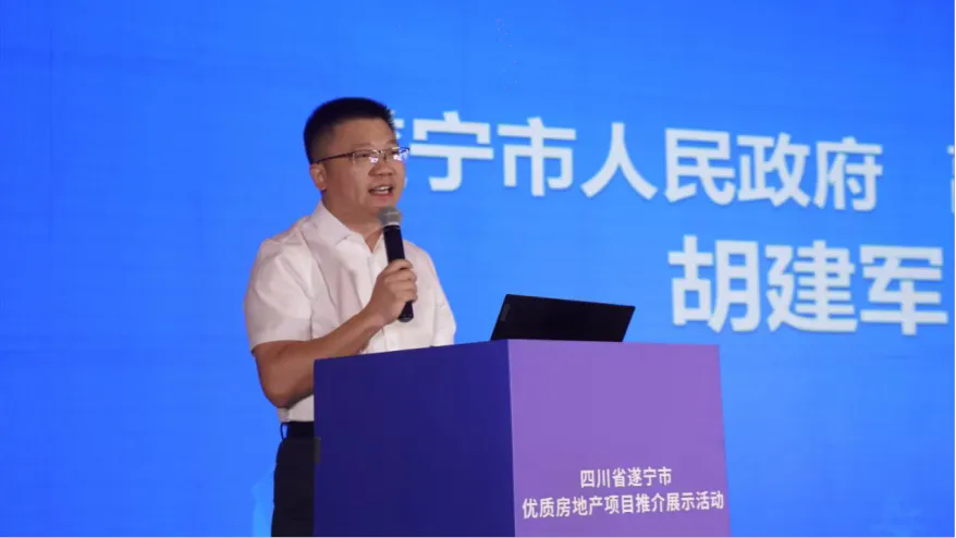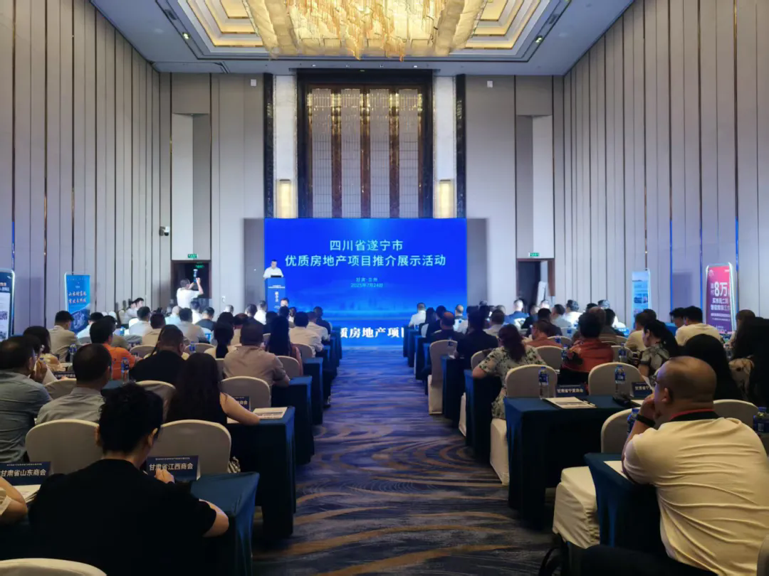 为了广泛宣传展示遂宁市城市形象和优质房地产项目,更好满足购房者多元化和改善性住房需求,2025年7月24日上午,由遂宁市住房和城乡建设局主办的“遂宁市优质房地产项目推介展示活动”在甘肃省兰州市富力万达文华酒店顺利召开。遂宁市人民政府副秘书长胡建军,市住房城乡建设局党组书记、局长邓勇等出席活动。参加本次活动的嘉宾有甘肃省川渝商会、兰州市遂宁商会、甘肃省江苏商会、甘肃省吉林商会、兰州市南充商会等16家商会的相关领导和企业家代表、遂宁市在兰州市经商务工人员、兰州市市民等150余人。