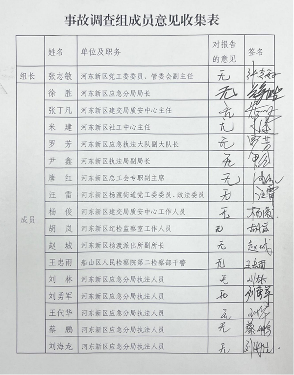 三、同意《事故调查报告》对事故责任的分析、认定和有关责任单位、责任人的处理意见。对事故责任单位及责任人员的处理由市河东新区相关部门依据管理权限和有关规定按程序执行。