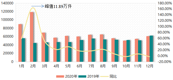 2020年月度来电同比情况图