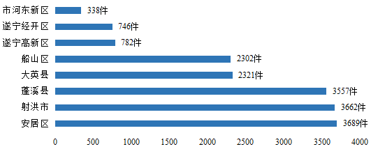 (三)一级网络单位办理情况。县(市、区)、市直园区中,办件量最多的是射洪市政府59692件,最少的是遂宁高新区管委会12054件。市直部门中,办件量最多的是市公安局8219件,年办件量达100件以上的24个,100件以下的29个。