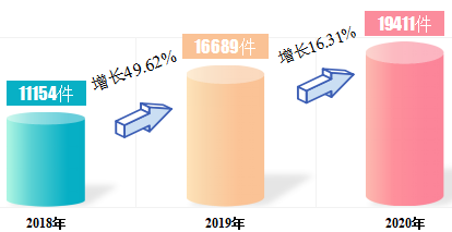 2020年,12345热线受理县(市、区)、市直园区有效来电39.70万件,同比增长19.30%,占有效来电总量的68.33%。转交县(市、区)、市直园区办理26.72万件,按期办结率100%;办结回复率94.10%,同比增长0.33%;群众满意率86.20%,同比增长4.74%。