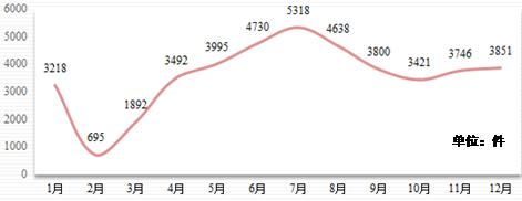 (八)工程欠款19411件。主要反映房地产建设、农村基础设施建设等项目克扣、恶意拖欠农民工工资及工程款,春节前后此问题凸显,峰值在1月达5655件,近3年来电量逐年递增。