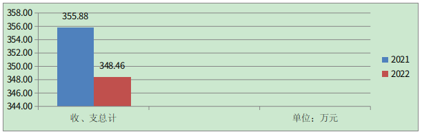 2022年度收、支总计348.46万元。与2021年相比,收、支总计各减少7.42万元,下降2.08%。主要变动原因是差旅费相关开支减少。