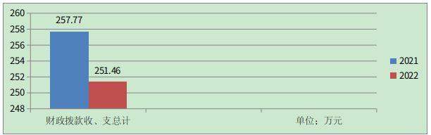 2022年财政拨款收、支总计251.46万元。与2021年相比,财政拨款收、支总计各减少6.31万元,下降2.45%。主要变动原因是本年度厉行节约,未购买公务用车,相关开支减少。