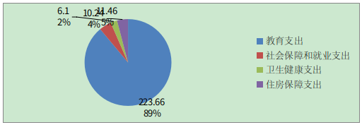 2022年一般公共预算财政拨款支出251.46万元,主要用于以下方面:一般公共服务支出0万元,占0%;教育支出223.66万元,占88.94%;科学技术支出0万元,占0%;文化旅游体育与传媒支出0万元,占0%;社会保障和就业支出11.46万元,占4.56%;卫生健康支出6.1万元,占2.43%;住房保障支出10.24万元,占4.07%。