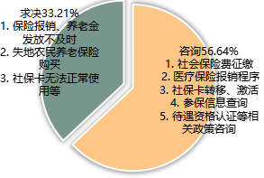 (一)社会保险83394件。整合12333热线后,该类来电量明显上升,同比增加6万余件,由2020年第9位攀升至2021年第1位,其中社会保险费征缴、医疗保险报销、社保卡转移等相关政策咨询是群众关注热点,占比56.64%。满意率94.41%。