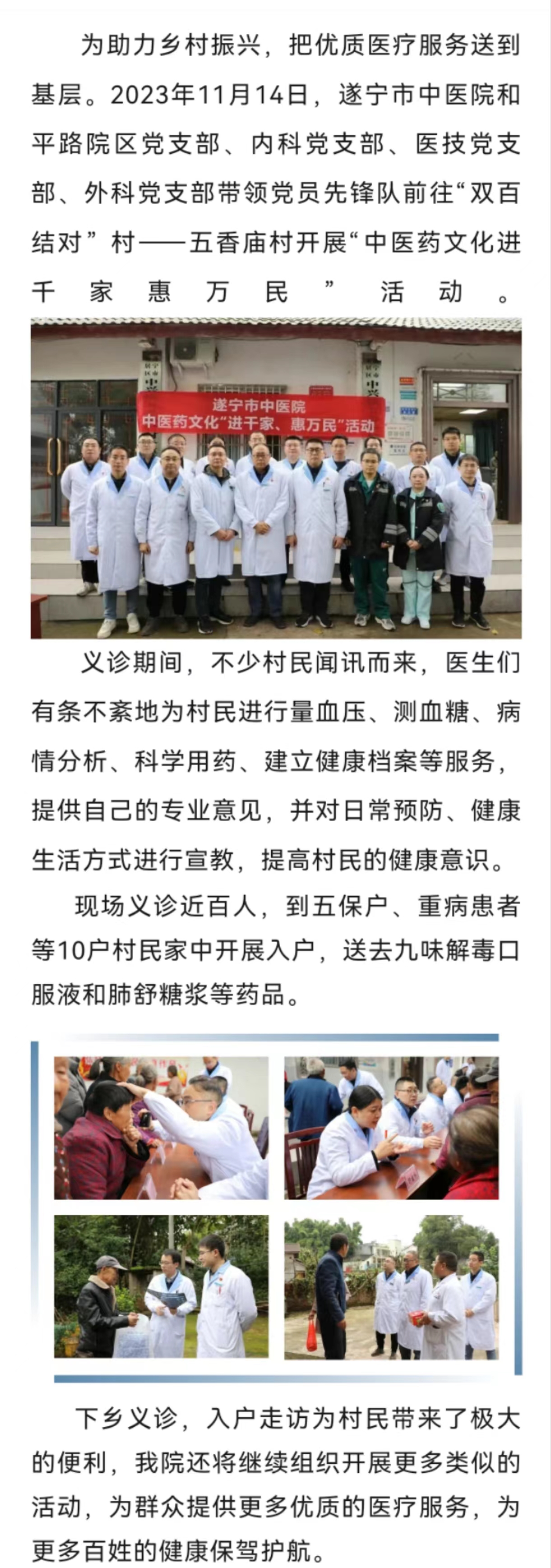 推动主题教育走实走深 健康遂宁系列报道③——遂宁市中医院送医送药到田坎