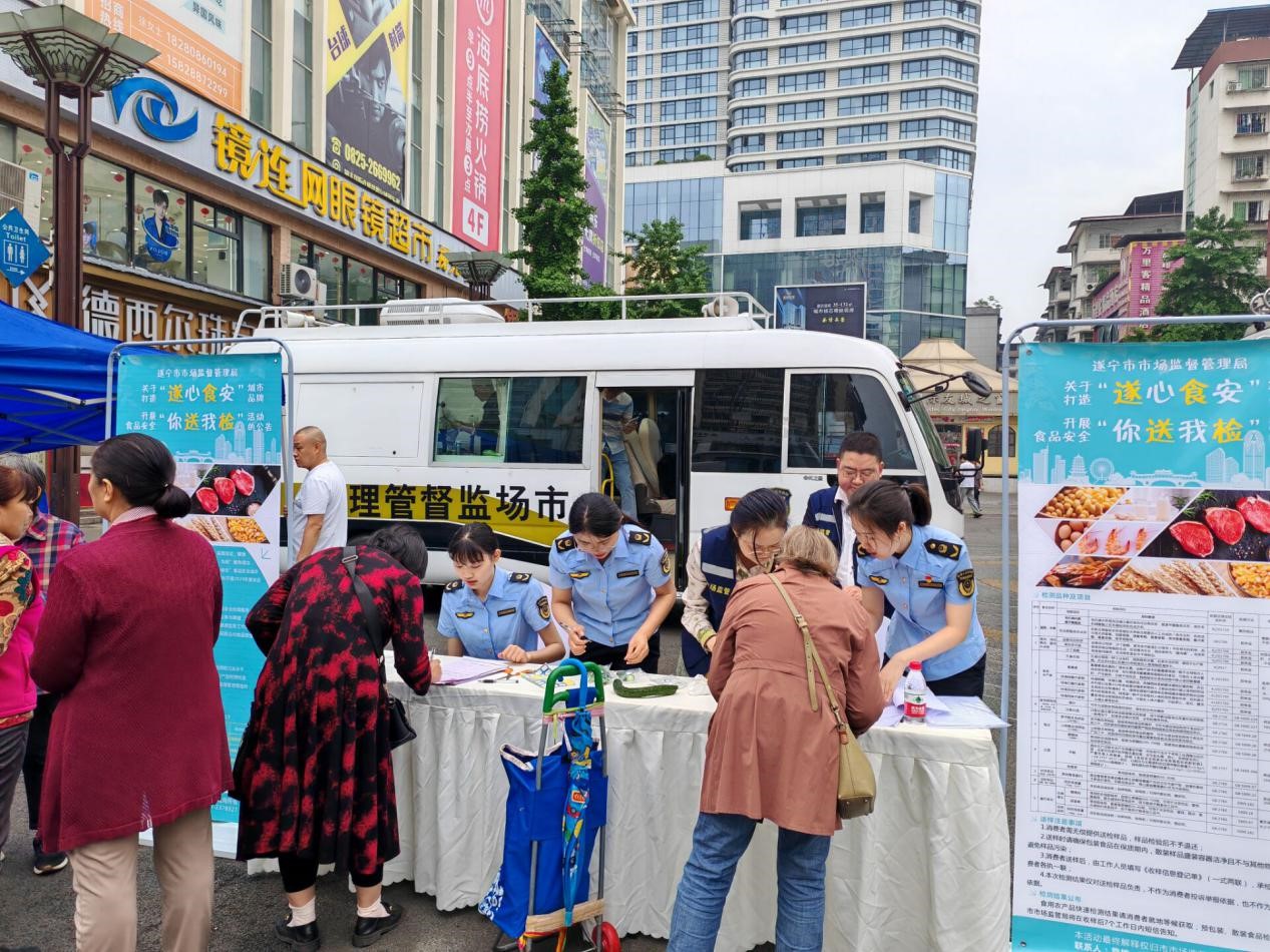 为深入推进市场监管部门“我为群众办实事”实践活动,聚焦人民群众身边的食品安全问题,践行“便民、利民、为民”服务理念,5月11日,遂宁市市场监督管理局在中央商务区百福广场开展2024年度食品安全“你送我检”第一期活动。