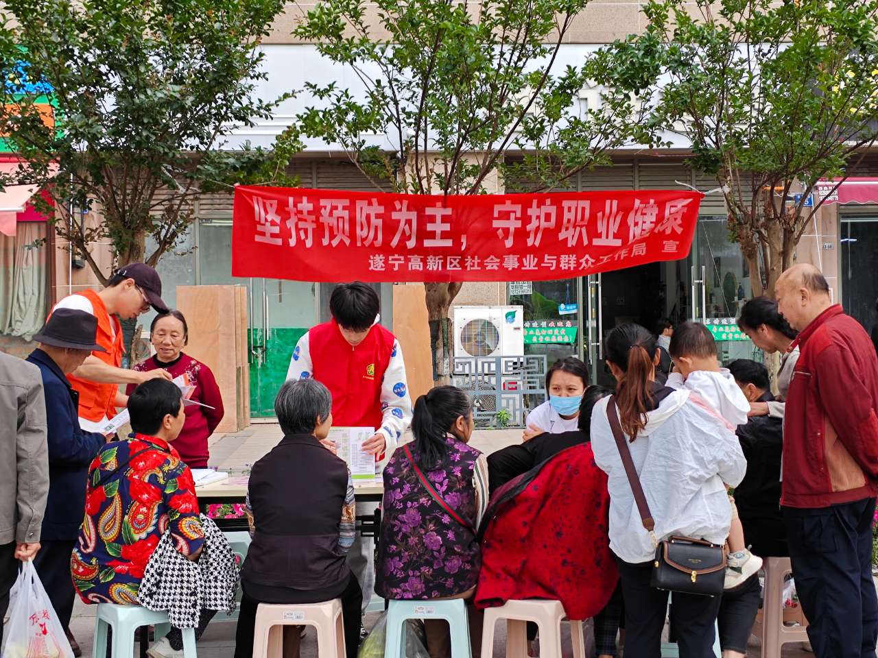 30日上午,社事局、城乡保障中心、西宁乡卫生院联合在华翔街开展宣传,活动以悬挂标语横幅、发放宣传手册、现场政策咨询解答和义诊等方式向民众宣传了职业病防治知识,引导广大劳动者增强防护意识,掌握必要防护技能,严格遵守操作规程,确保在工作中正确使用职业病防护设备和个人防护用品。活动累计发放宣传手册100余份,群众义诊进行近100余次,接受群众咨询200余次,受到了广大群众一致好评。