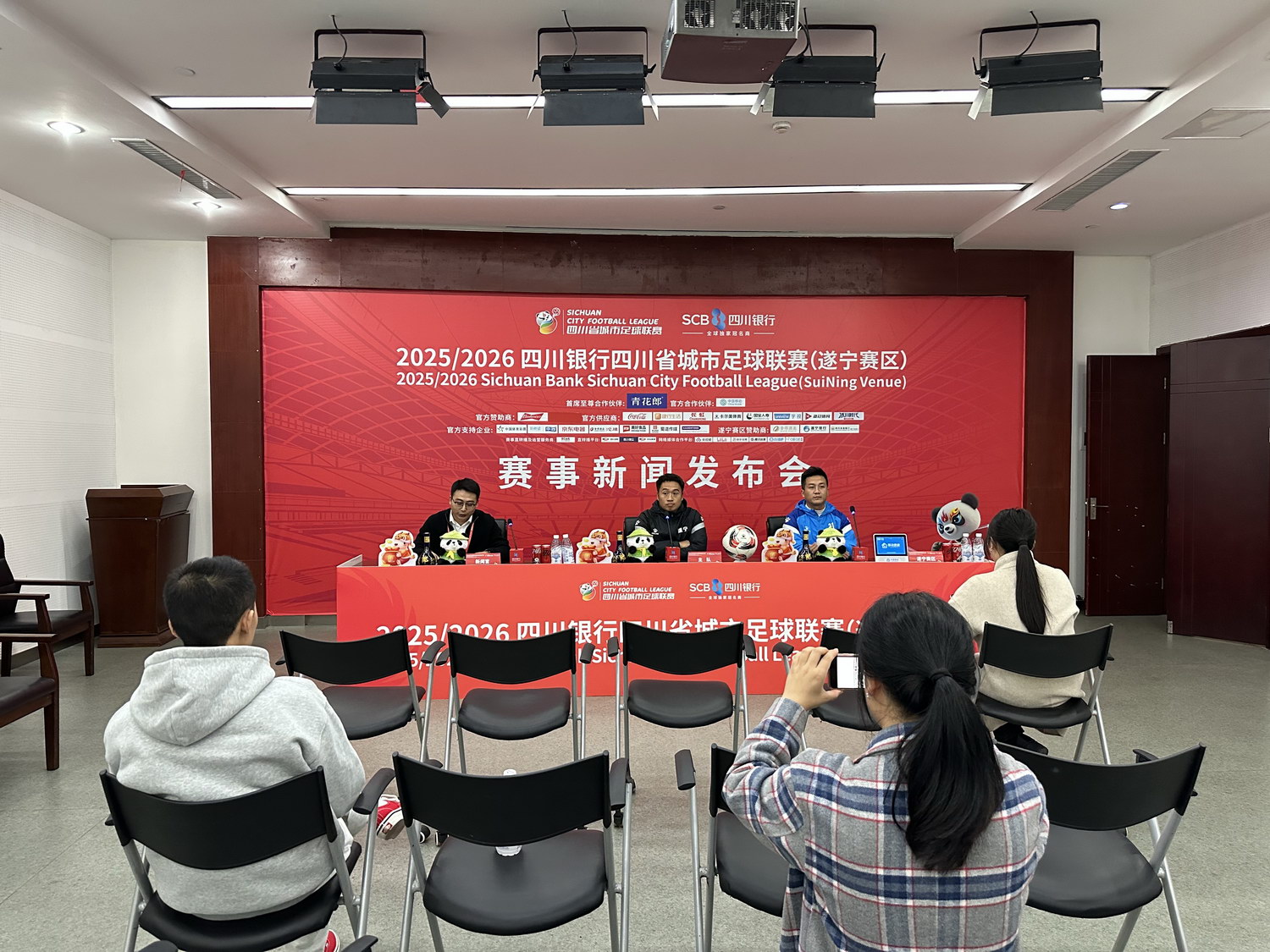 10月26日晚19:35,2025/2026四川银行四川省城市足球联赛(简称“川超”)分区赛第六轮比赛即将拉开帷幕,成都锦城队将在遂宁体育中心对阵遂宁舍得干队。10月25日19:45,遂宁舍得干队在遂宁体育中心召开赛事新闻发布会,就比赛相关事项回答记者提问。