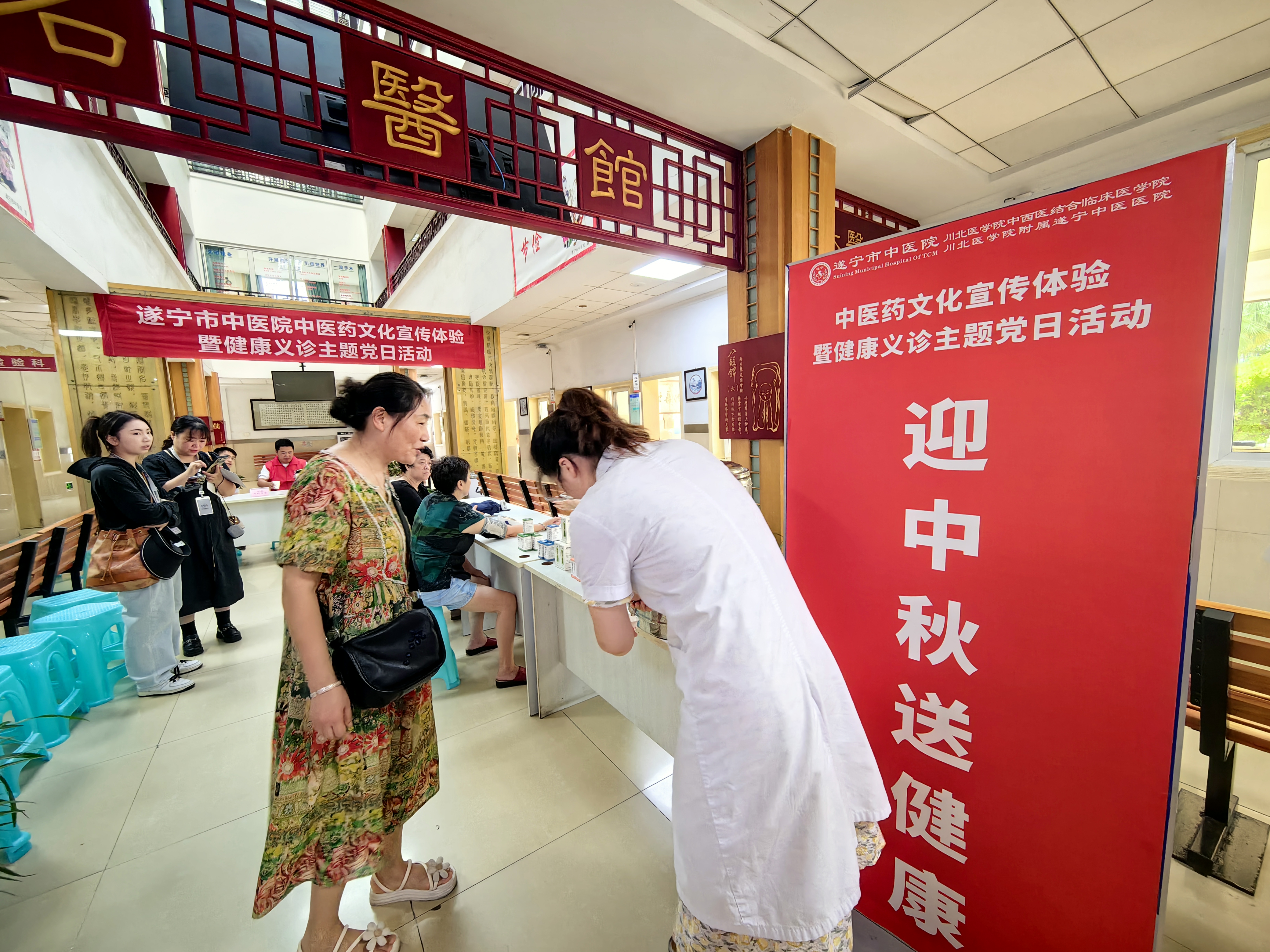 中秋前夕,为更好弘扬中医药文化,提升市民健康素养,遂宁市中医院临床第一党总支、行后第一党支部联合开展了“迎中秋 送健康 中医药文化宣传体验暨健康义诊”主题党日活动。