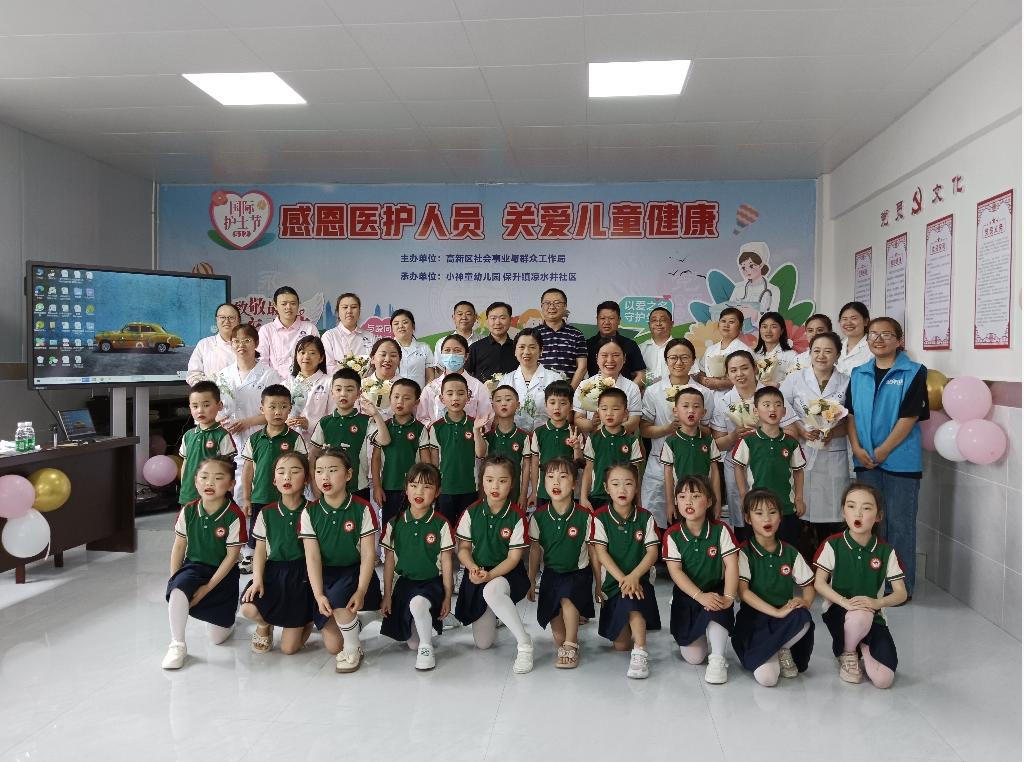 今年5月12日是第113个国际护士节,为弘扬南丁格尔救死扶伤的人道主义精神和为护理事业无私奉献的高尚品质,培养孩子们对医护人员的尊敬意识,5月9日下午,由遂宁高新区社事群工局主办,小神童幼儿园、保升镇凉水井社区承办的以“感恩医护人员 关爱儿童健康”为主题的国际护士节活动在保升卫生院举行。社事群工局、保升镇相关负责人以及园区部分医护人员参加活动。