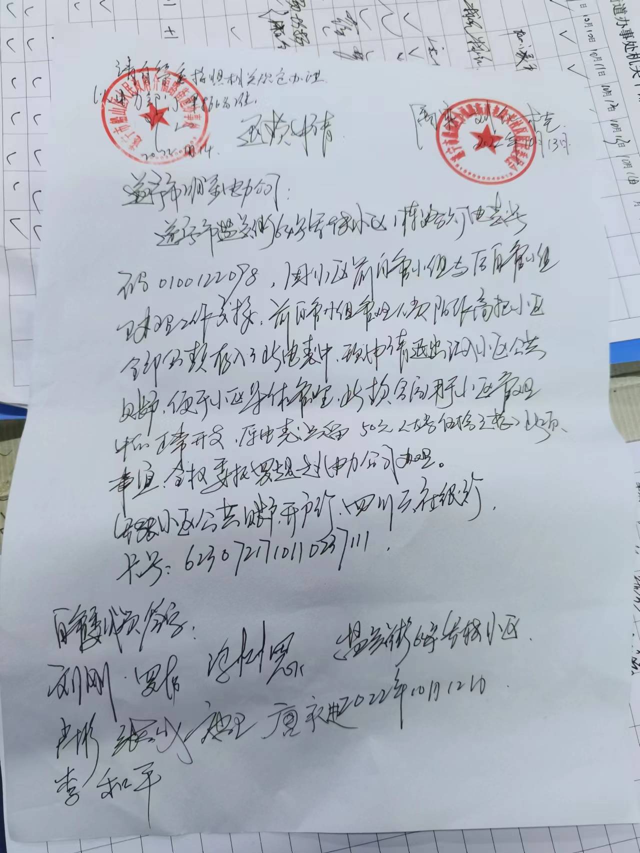 前天向您们反应的问题,明星电力公司上层领导昨日上午来电态度极好并表示尽快解决好反应的问题,可是他们的下属单位(遂宁市广电局旁边的电力公司营业部)在执行的过程中,还是以种种理由拒绝退费,老盐关社区、介福路街道办办事处都是遂宁市委领导下的基层党组织,两级领导也签字盖章,也证明了退费这件事情的真实性。明星电力公司凭啥还要拒绝退费,他们可以不相信军转小区自管委,但他们应该相信属地管理的党组织呀......