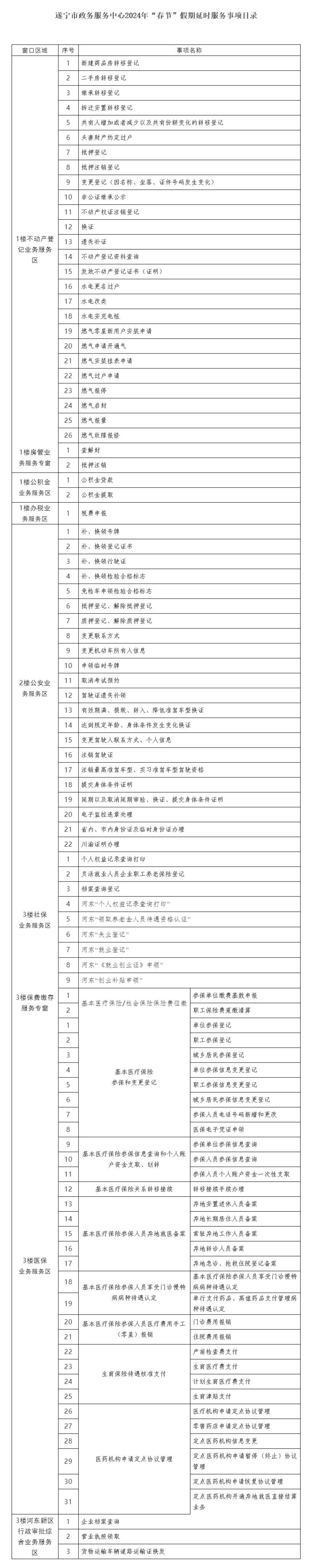 附件:遂宁市政务服务中心2024年“春节”假期延时服务事项目录