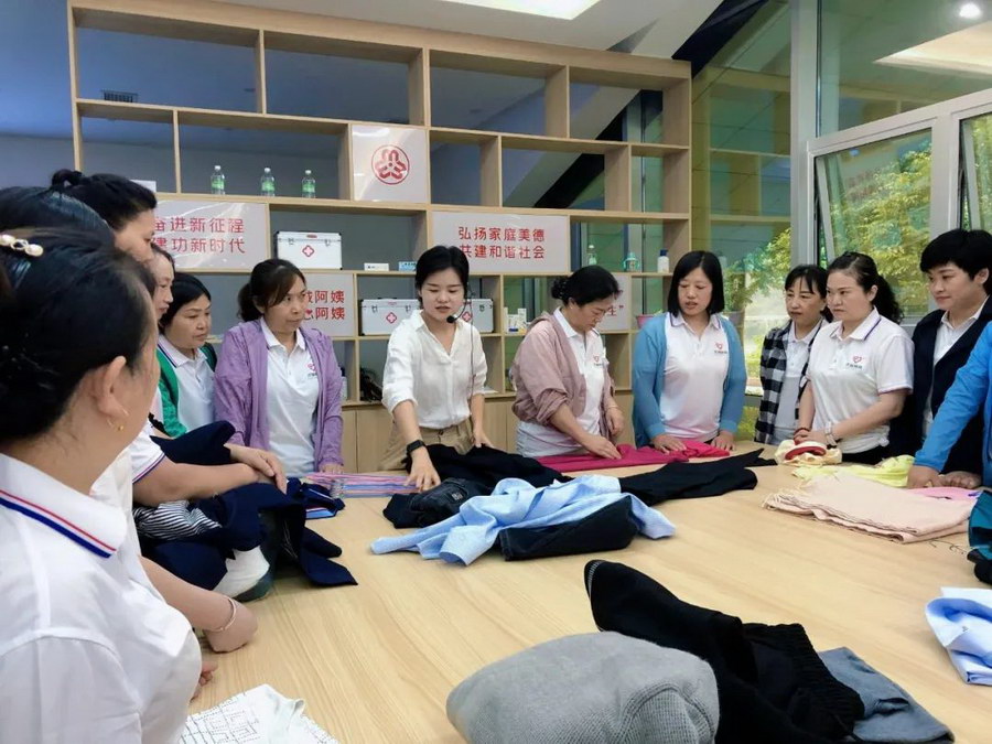 “洪城阿姨”认证培训班,学员们认真学习收纳整理课程。