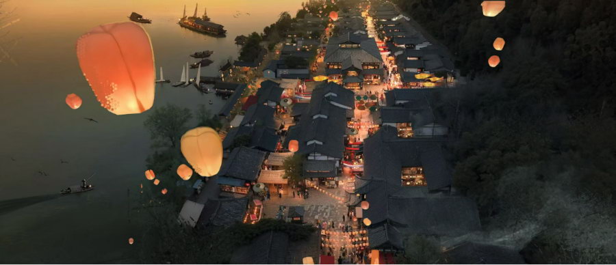 螺湖半岛仿古街影视城效果图。