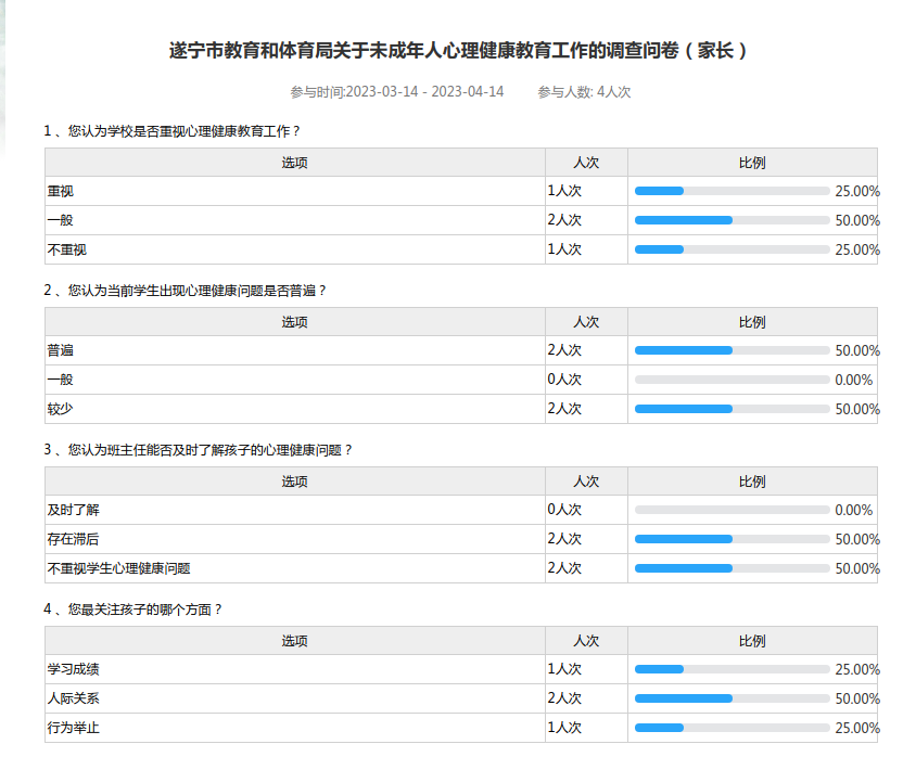 遂宁市教育和体育局关于未成年人心理健康教育工作的调查问卷(家长)