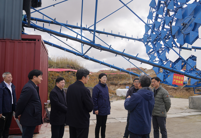 10月14日,施小琳在稻城县察看高海拔宇宙线观测站建设运行情况。