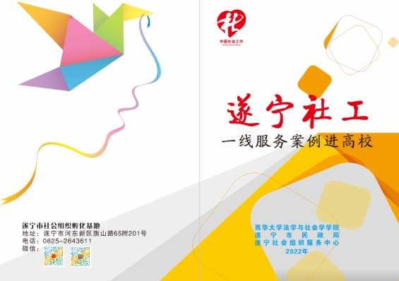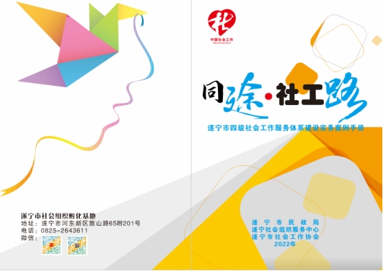根据《遂宁市2022年健全社会工作服务体系工作方案》及年度重点任务安排,遂宁市民政局、遂宁社会组织服务中心、遂宁市社会工作协会在各县区试点、提升的基础上,收集整理了乡镇(街道)社工站、村(社区)社工室、县(市、区)社工总站等实务案例21个,并以《遂宁社工四年探索:构架四级社工服务体系,架起社会服务四梁八柱》为序,集结成册,分为《同途·社工路—遂宁市四级社会工作服务体系建设实务案例手册》、《遂宁社工——一线服务案例进高校》两个版本。
