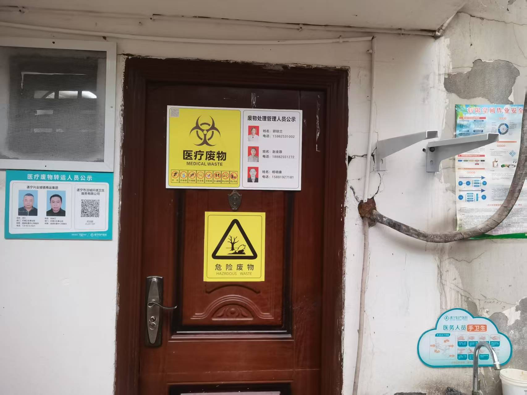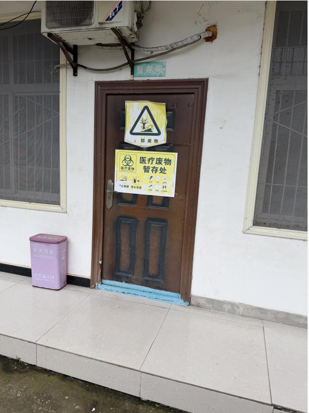 隐患:医疗废物暂存间未张贴有限空间安全警示标志,未作业时工作人员忘记取钥匙。